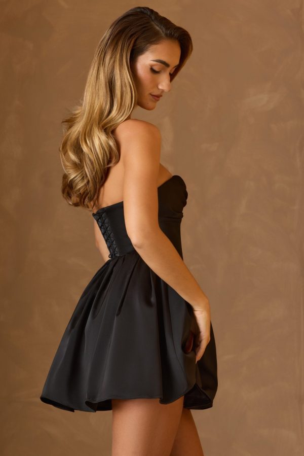 Elevate your evening look with this stunning corset dress, expertly crafted from luxurious lightweight satin that creates a beautiful silhouette with a perfectly fitted bodice and flowing layered skirt. Designed with a sleek bandeau cut, it features structured boning for exceptional support and shape, elegant draped cowl-neck detailing, and an adjustable lace-up back for your ideal customized fit.