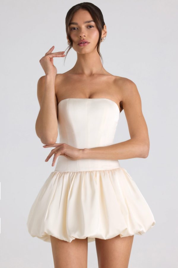Ivory Lace-Up Bubble Hem Corset Mini Dress by Oh Polly