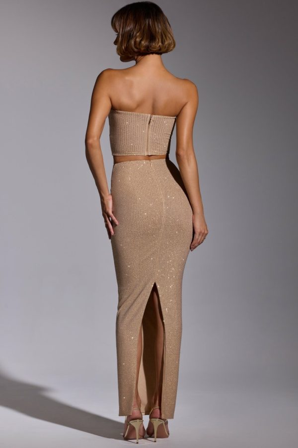 Melisande Embellished Mid-Rise Maxi Skirt in Gold