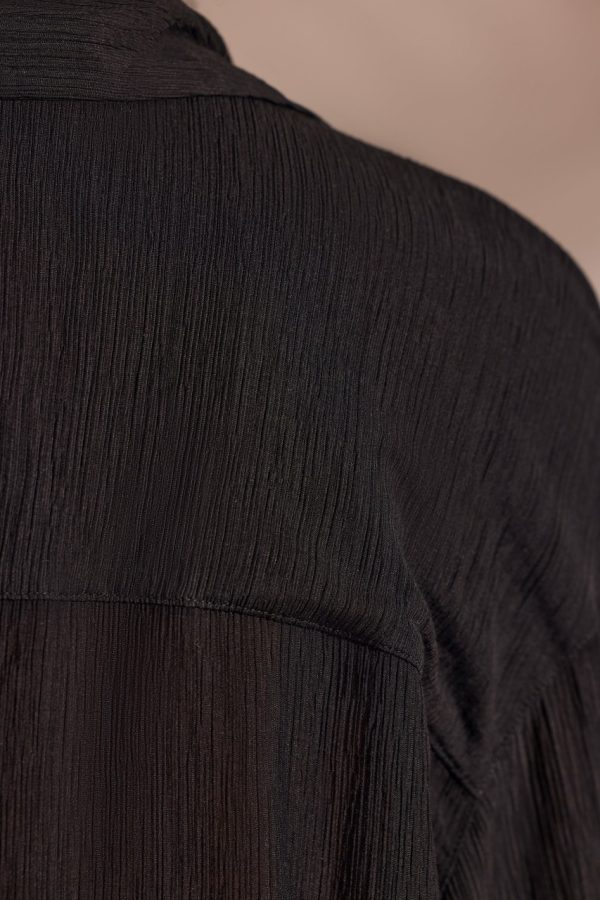 Oh Polly Clothing | Crinkle Textured Oversized Beach Shirt In Black – Women
