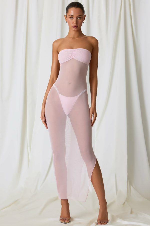 A complement to glamorous beach looks, the Papeete midi dress is crafted from semi-sheer 20D stretch mesh to a bandeau silhouette with a double-layered bust cup for enhanced coverage and internal silicone tape for extra hold. It’s cut to a midi-length bandeau silhouette, complete with a breezy side split.