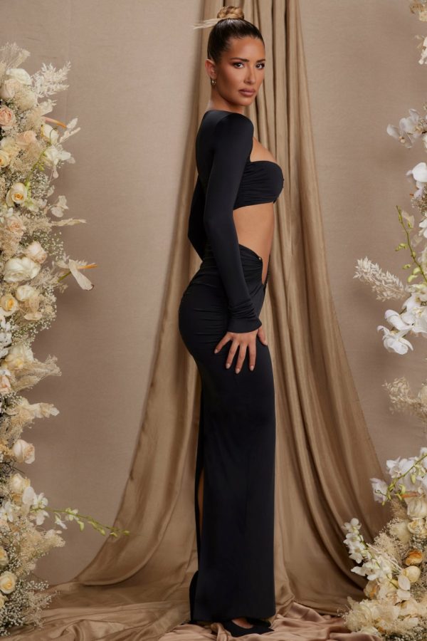 Oh Polly Co-Ords | Asymmetric Draped Maxi Skirt In Black – Women