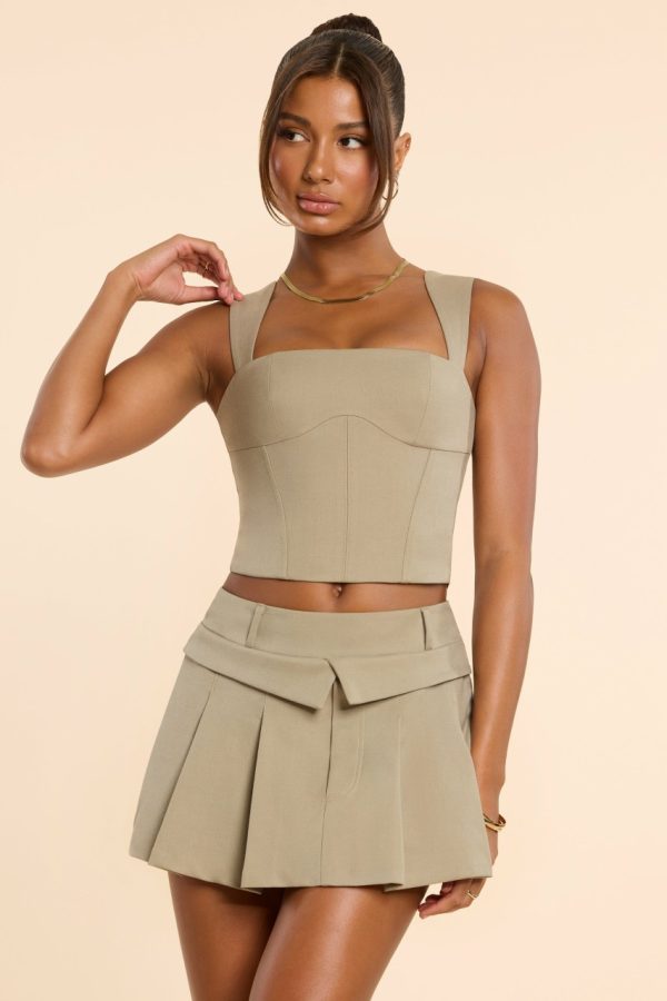 New season separates. A statement piece created with city adventures in mind, the Maize mini skirt is designed in our premium brushed twill fabric that enhances your shape whilst offering a clean, tailored aesthetic. A versatile outfit staple, Maize is a mid rise design complete with a pleated skirt and double layered waistband.