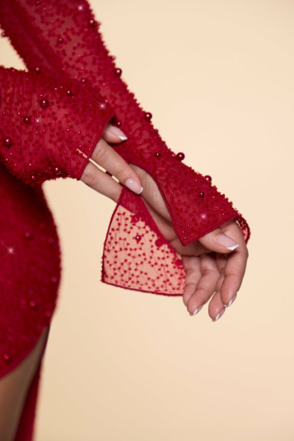 Designed to make an impact, La Desirade is super cropped and super embellished. Fully beaded with extra long mesh sleeves that flare at the wrist, the La Desirade crop top features an underwired bust with a pearl embellished, cowl neck overlay. It’s time to feel adorned in our embellished mesh crop top.