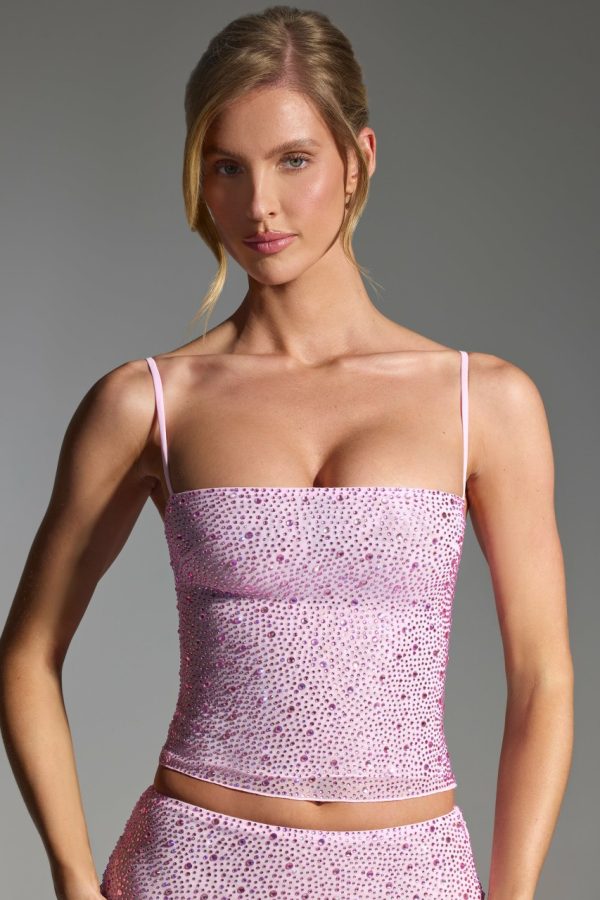 Glittering separates. Designed for mix-and-match styling, the Elea top is rendered in three standout hues. It’s crafted from premium 20D mesh to a figure-hugging bodycon silhouette and adorned with signature HOTFIX embellishments that sparkle under spotlights. The straight neckline is framed with slender adjustable camisole straps for your perfect fit.