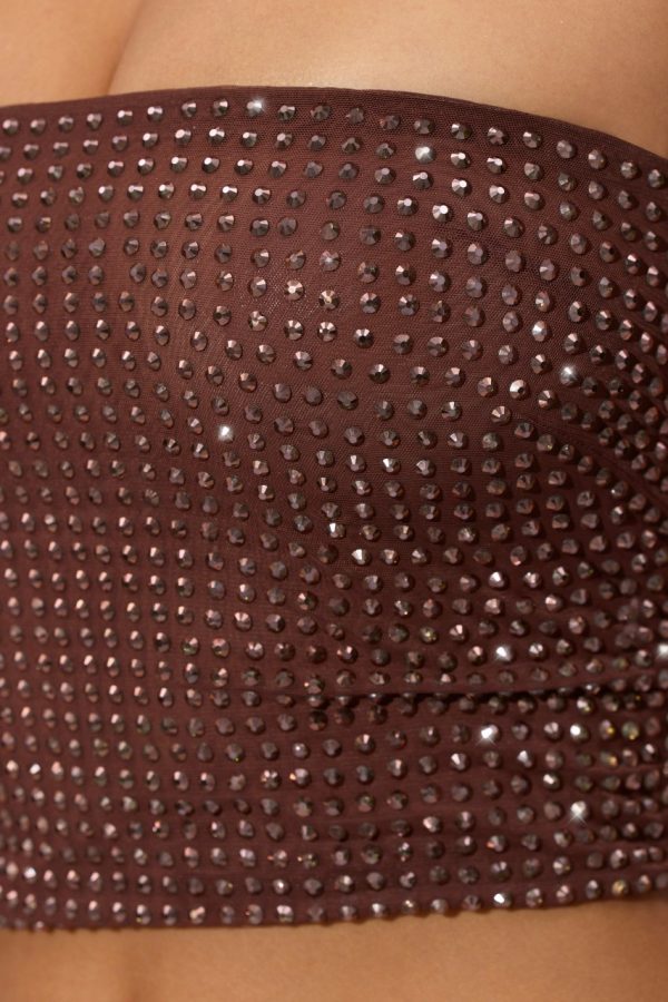 Oh Polly Co-Ords | Embellished Strapless Crop Top In Espresso – Women