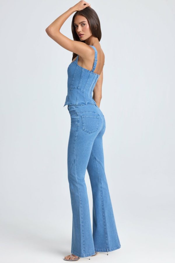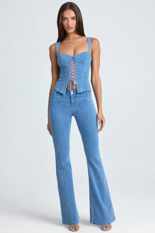 Oh Polly Co-Ords | Mid-Rise Flared Jeans In Mid Blue Stonewash – Women