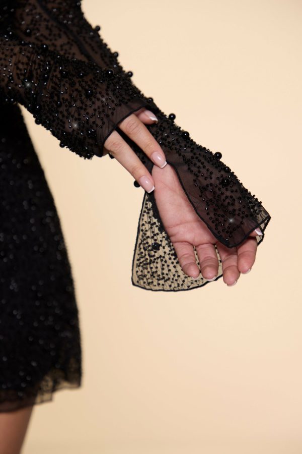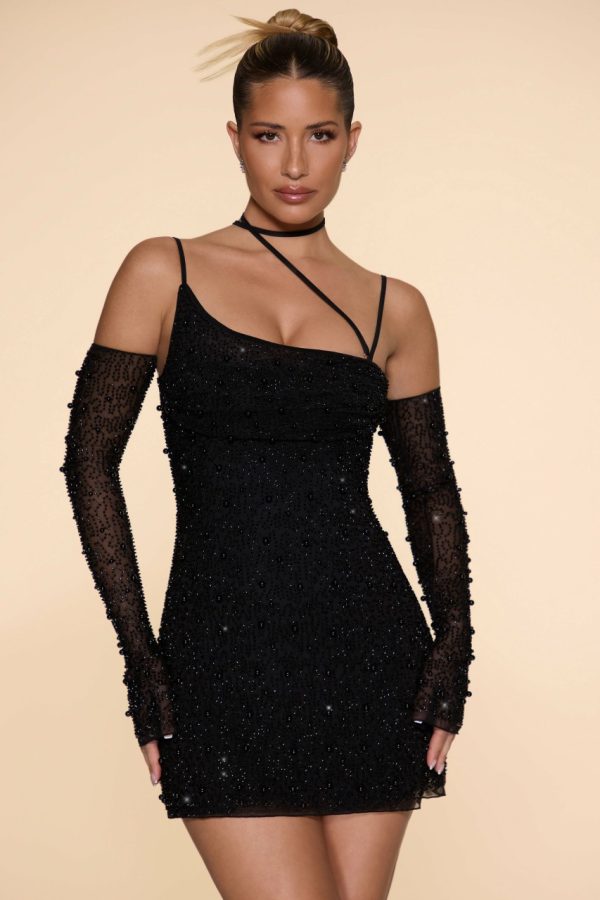 Fun and flirty, Soho was designed for girls who know how to command attention. Cut from our pearl and bead adorned fabric in two lustrous colourways, Soho features a bust flattering cowl neck with asymmetric, ultra thin straps that cascade across the neckline. With our signature built-in corsetry that works to cinch your waist, Soho is a bodycon design to the waist before the skirt falls to a thigh skimming a-line design. Complete with fully embellished, detached long sleeves that flare at the wrist, Soho has everything you need for your new season, party girl wardrobe.