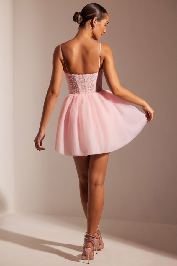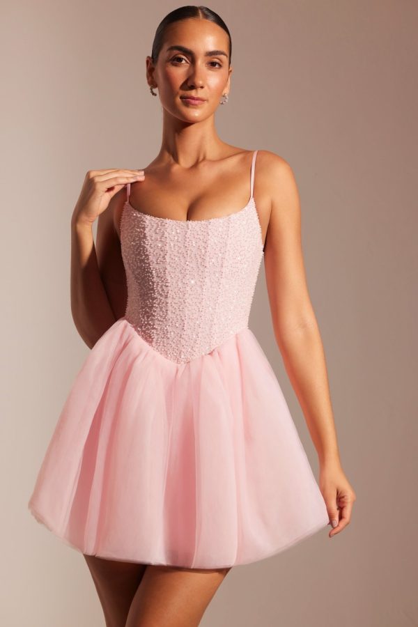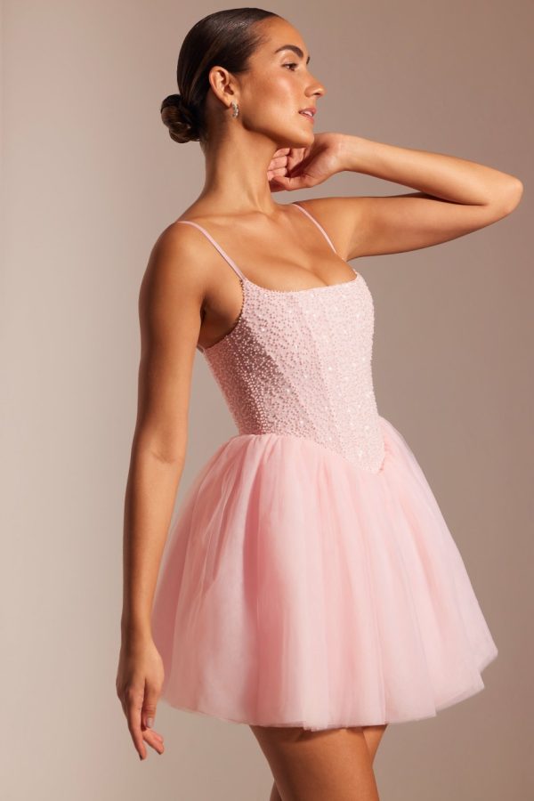 Oh Polly Corset Dresses | Embellished Corset Tulle Skirt Mini Dress In Blush – Women