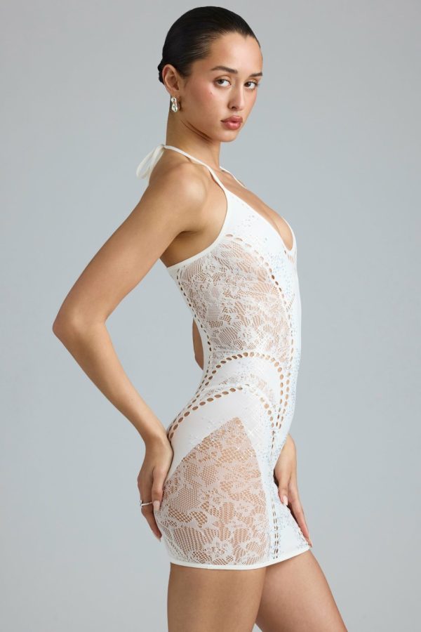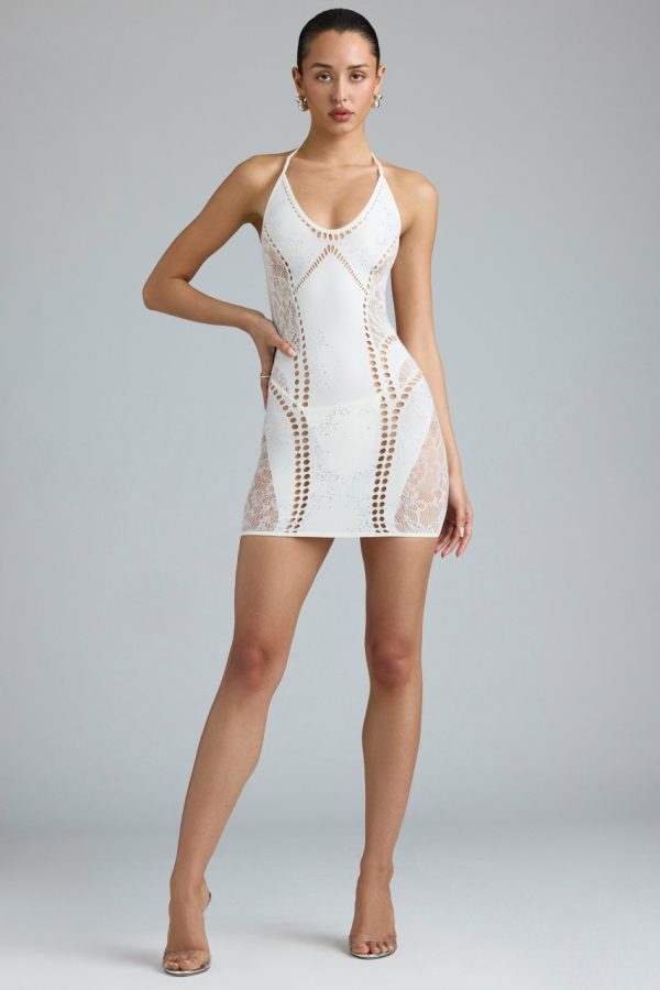 Oh Polly Embellished Dresses | Embellished Halterneck Mini Dress In Ivory – Women