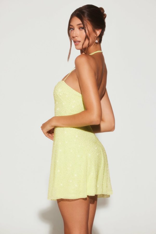 Glistening moments in Salerno. A fun and flirtatious silhouette designed in three sorbet shades, Salerno is a glamorous and flattering style made from our premium dual layered mesh fabrication. Fully embellished with seeded beading, Salerno is complete with an A-line mini skirt and a form-fitting bandeau bodice with detachable halterneck straps that allows you to customise the design.