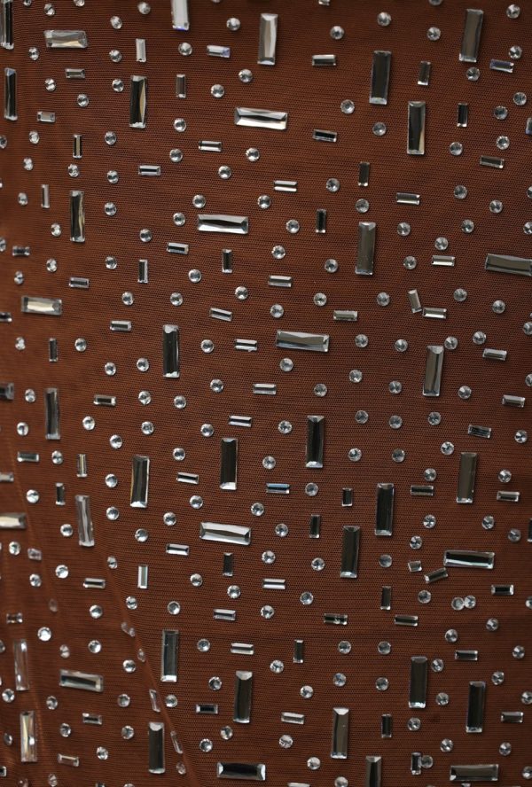 Oh Polly Embellished Dresses | Sheer Embellished Scoop Neck Mini Dress In Mocha – Women