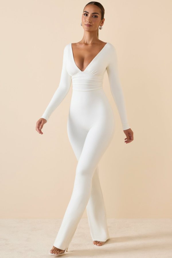 Year-round styling made easy. A staple piece that can be dressed up or down, the Helene jumpsuit is crafted from our signature buttery soft and stretchy jersey made with TENCEL™ Modal fibres, derived from controlled or certified wood sources. It’s framed with a plunging V-neck, ruched detailing at the waist and falls to an elongating flared silhouette.