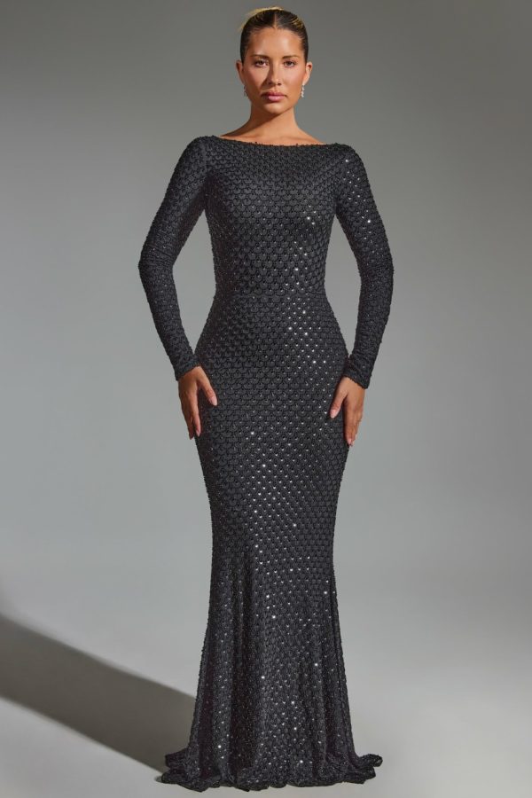 Classic elegance with a signature twist. Modelled on timeless styles, the Jailene gown is cut from double-layered premium power mesh to a stunning fishtail silhouette framed with a high boat neck. It’s adorned with unique scalloped crystal embellishments and turns to reveal a statement open back, complete with an adjustable horizontal strap for a custom fit and perfectly positioned ruching at the back for enhanced shaping.