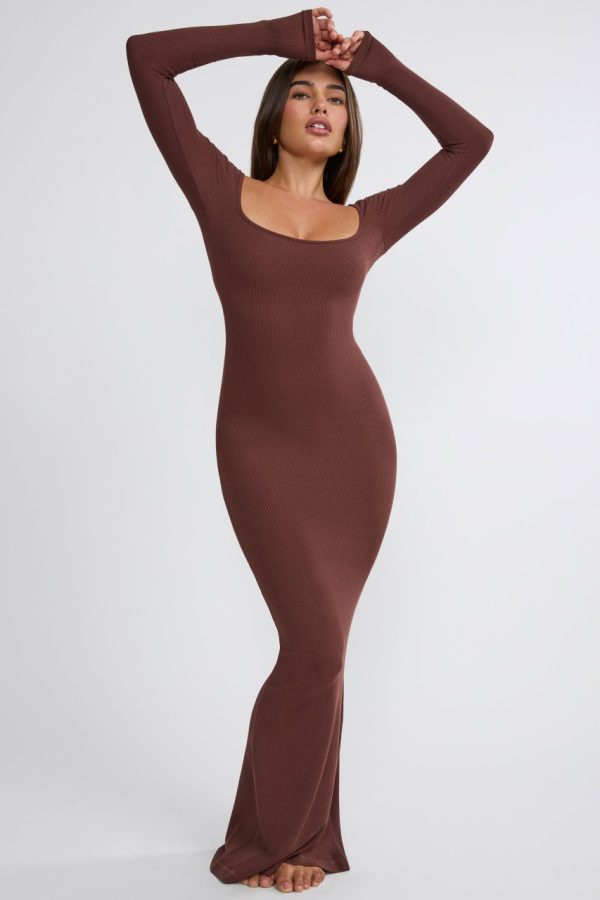 Modern minimalism. Blending style and sustainability, discover our Modal edit of elevated everyday staples and year-round wardrobe foundations. Crafted from low-impact TENCEL™ Modal fibres, the Jude maxi dress is a curve-enhancing bodycon silhouette that combines premium quality with a commitment to the planet. Featuring unmatched softness and breathability, this ribbed design is complete with a square neckline and long tight cut sleeves. Biodegradable and compostable, the TENCEL™ Modal fibres are sourced sustainably from beechwood trees.