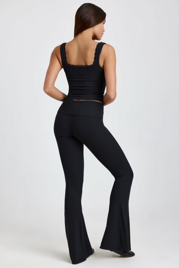 Oh Polly Lounge & Intimates | Ribbed Modal Lace-Trim Tank Top In Black – Women