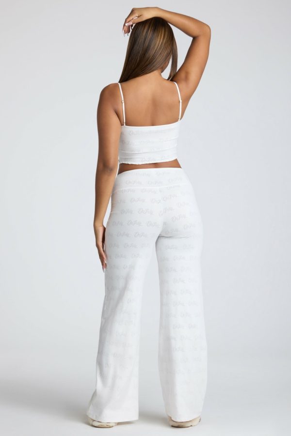 Experience ultimate comfort with our effortlessly chic loungewear collection. Crafted from our premium lightweight pointelle jersey fabric with just the right amount of stretch, these trousers feature subtle Oh Polly embossed branding throughout. Perfect for relaxed days at home or casual outings, these versatile pants combine comfort with style through their flattering mid-rise waistband, contemporary straight leg silhouette, and delicate lettuce hem detailing.