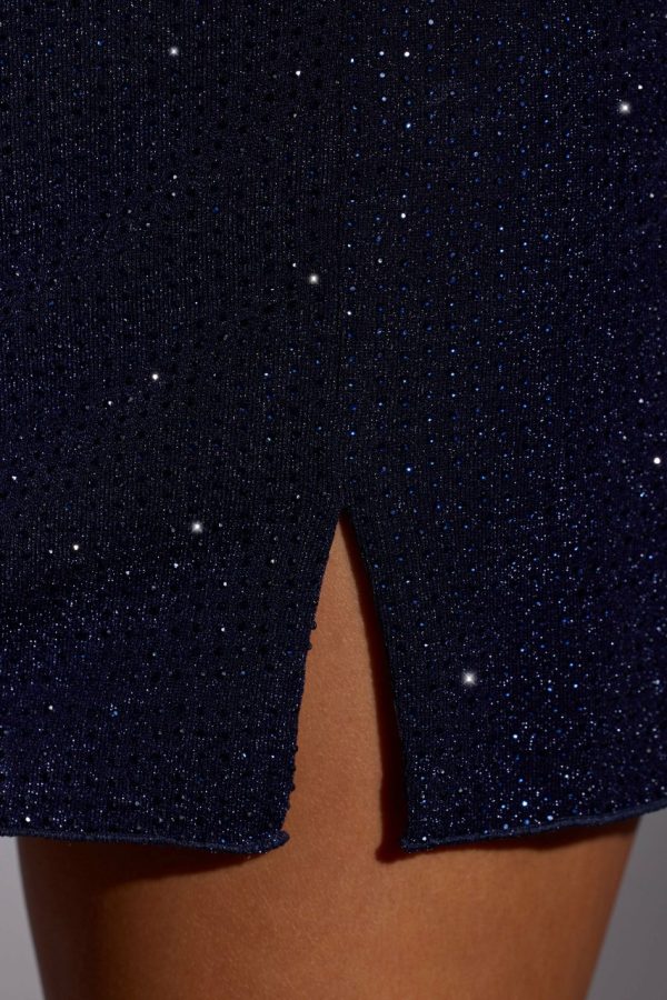 Sparkle season has arrived at Oh Polly and the Arabella mini dress is a premium design created to capture the light. Created in our stretch jersey fabric with woven metallic yarn throughout, Arabella features all over hotfix embellishment to enhance its sparkle. This stunning A-line silhouette is cut to a mini length with a high neckline and open back.