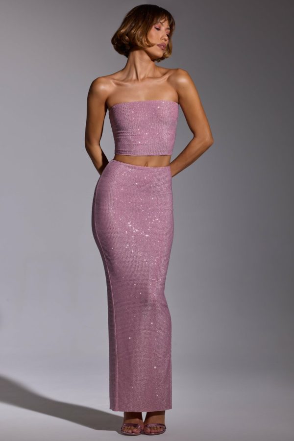 Create an unforgettable two-piece look with the glittering Melisande gown skirt. Cut to a dramatic maxi length and hand-embellished with sparkling hotfix, Melisande is made from stretch jersey fabric with woven metallic yarn. The flattering mid-rise design is destined to sparkle on the dancefloor and features a centre back split for ease of movement.