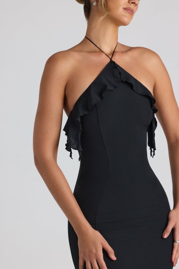 A love letter to spring occasions. The Mireya halterneck gown is designed with memorable events in mind. It’s crafted from lightweight, figure-enhancing georgette with a floor-length fishtail skirt that creates a stunning hourglass silhouette. It’s adorned with cascading ruffle trims and finished with shaping princess seams at the front and back.