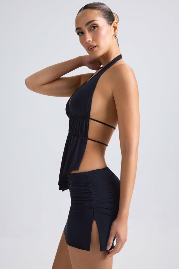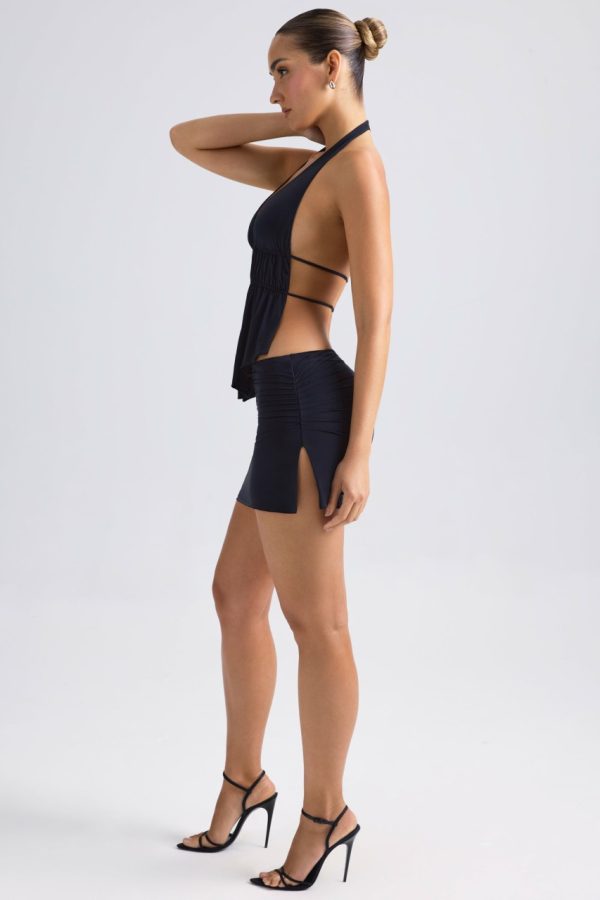 Wear-anywhere staples. Cut to a universally flattering A-line silhouette, the Roya mini skirt is crafted from premium, sheer stretch jersey and enhanced with subtle ruching to one side. It’s set on a straight elasticated waistband and finished with a small split on the left side.