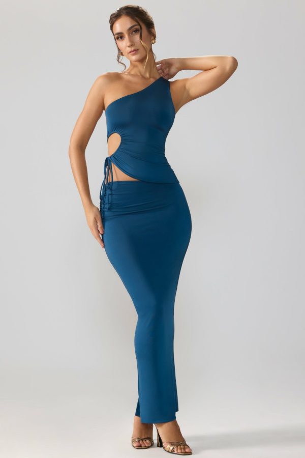 Oh Polly Skirts & Skorts | Slinky Jersey Asymmetric Waist Maxi Skirt In Midnight Blue – Women