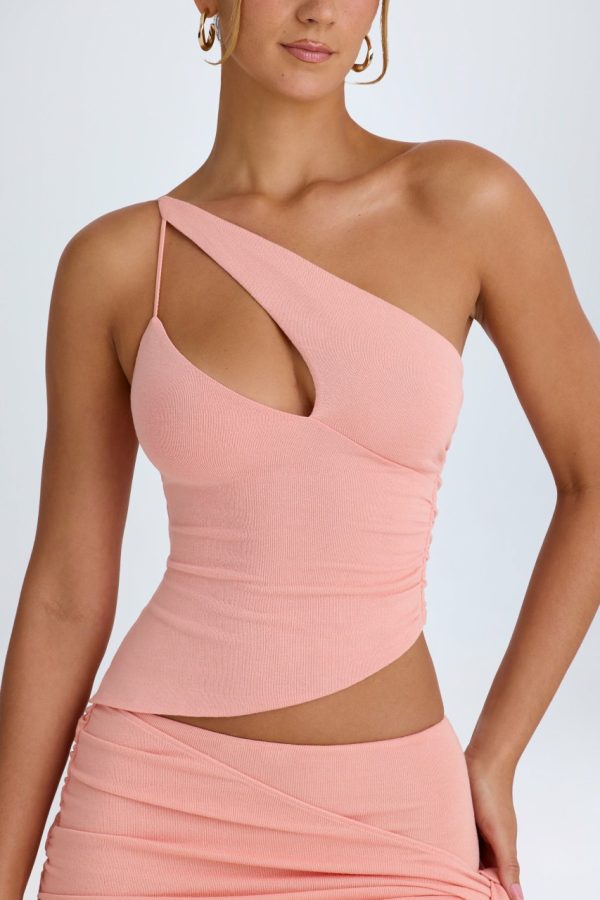 A style you’ll reach for year-round, the Hazela top is cut to a striking one-shoulder silhouette. It’s crafted from premium stretch-knit jersey with a touch of stretch and features a single adjustable shoulder strap for custom styling. It’s elevated with a cut-out neckline and asymmetric hem. Style it with the coordinating Misty skirt for evening plans.