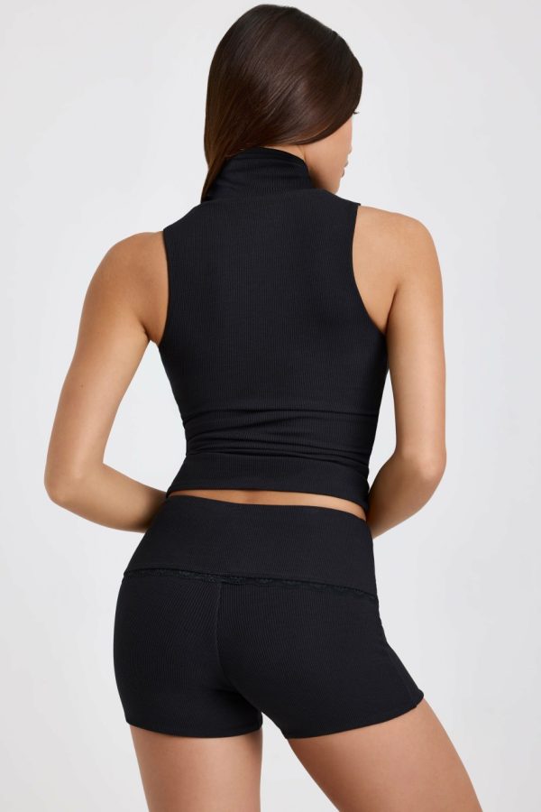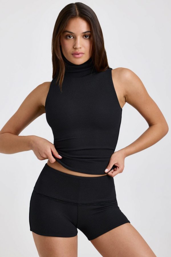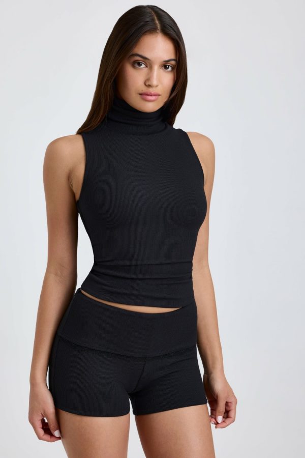 Oh Polly Tops | Ribbed Modal Turtleneck Tank Top In Black – Women