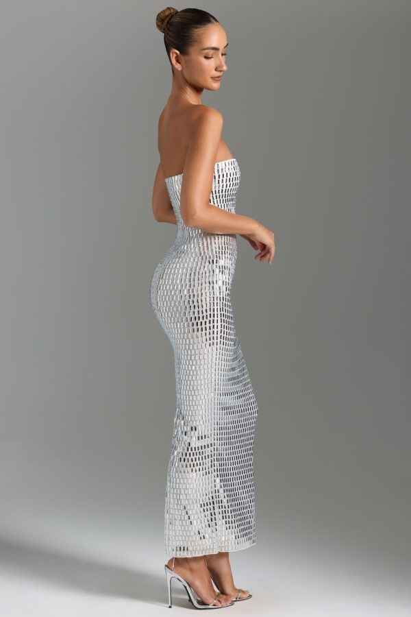 Experience true luxury with this stunning piece. Expertly designed in-house, the Amaya maxi dress is crafted for those unforgettable moments that demand exceptional style. It features premium 20D mesh construction with double-layered mesh lining for superior coverage and comfort. The sculpting bandeau design dazzles with hundreds of sparkling HOTFIX crystals, strategically placed to create mesmerizing light reflections with every movement. Complete with versatile detachable camisole straps for personalized styling options.